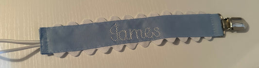 Custom Embroidered Name Paci Clips with Scallop Trim