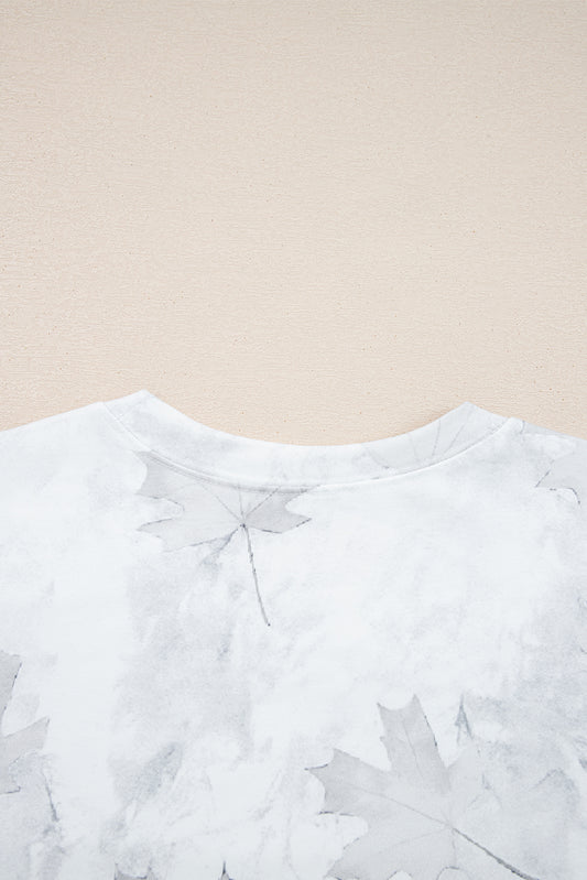Beige Maple Camo Print Pullover Top and Elastic Waist Casual Short Set