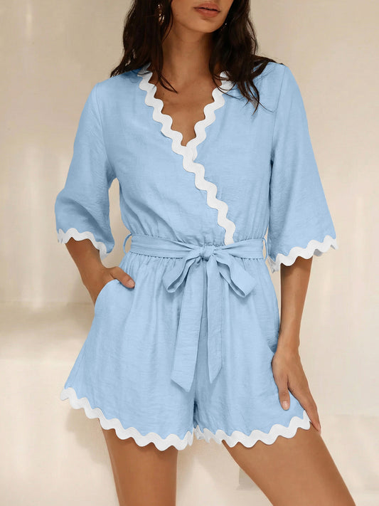 Scalloped Trim Wrap Romper