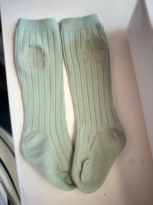 Monogrammed Knee High Ribbed Cotton Socks