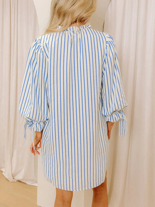Stripe Knotted Sleeve Notched Shift Mini Dress