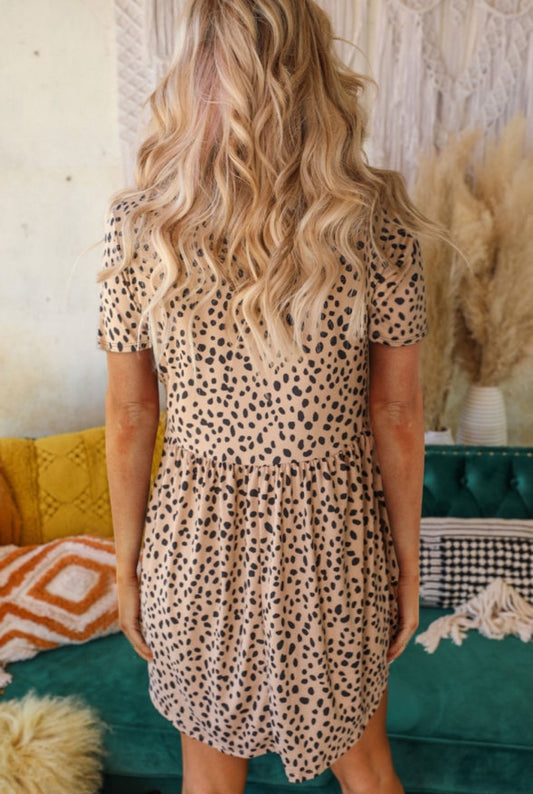 Cinnamon Split Neck Scallop Detail Pleated Corduroy Mini Dress